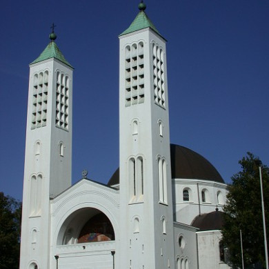 Dit KERKGEBOUW, gewijd aan Sint Antonius van Padua maar beter bekend onder de naam "Cenakelkerk", is in 1913-1915 in opdracht van de Heilig-Land-Stichting gebouwd naar ontwerp van J. Stuyt (assistent tekenaar J. Margry) in samenwerking met beeldend kunstenaar P. Gerrits. In de periode 1921-1932 is het INTERIEUR door P. Gerrits voorzien van mozaïeken en schilderingen. Aanvankelijk verleende Mgr. W. van de Ven de opdracht aan architect Jos. Margry in verband met diens goede contacten met de Rotterdamse mecenas Grewen (stichter van het St. Antoniusfonds). Na het overlijden van Margry werd door Suys, die inmiddels tot bouwpastoor was benoemd, de ervaren architect J. Stuyt benoemd tot hoofdarchitect. De zoon van de overleden Margry stond hem bij als assistent tekenaar. Nadat in februari 1913 de definitieve bouwplaats voor de kerk bekend is, komt in juni 1913 het definitieve ontwerp gereed. Op 7 september 1913 wordt het contract getekend met aannemer Jac. van Groenedaal uit Breda voor de bouw van "kerk met torens en koepel, sacristie, klooster en pastorie met museum, de verbindingsgangen etc.". Verantwoordelijk voor de gewapend betonconstructie van de koepel, met de voor die tijd uitzonderlijke doorsnede van ca. 14,5 meter, was ir J. Wiebenga van de uitvoerende Bredase firma Stulemeijer. De inzegening van de kerk vond plaats op 6 januari 1915 en de consecratie op 11 juni 1915.