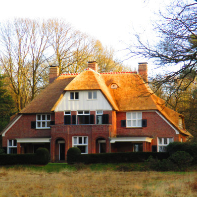 LANDHUIS met POMPHUISJE uit 1919-1920 naar ontwerp van S. de Clerq in Gooise Landhuisstijl, waarbij overwegend sprake is van invloeden uit de Engelse landhuisbouw..
