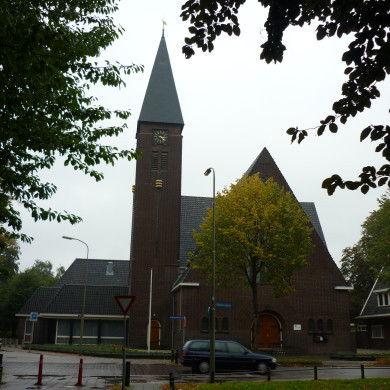 KERK met TOREN, CONSISTORIE en KERKENRAADSKAMER uit 1932, ontworpen door de Harderwijkse architect P.H. van Lonkhuyzen, onder invloed van de Amsterdamse School. In 1961 en 1986 is de kerk linksachter uitgebreid, deze bouwdelen vallen niet onder de bescherming.