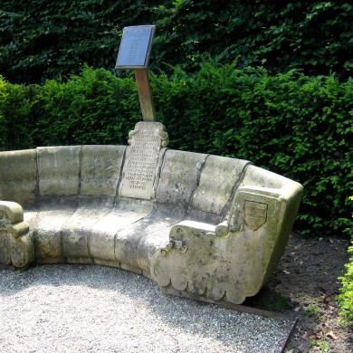 Een GEDENKBANK uit 1930 ('14mei/1850-1930 ter herinnering aan den 80sten/verjaardag van/H.F.B. Jacob/hebben zynen/kinderen klein/en achterklein/kinderen eens/gezindt/ in gevoe/lens van liefde/en eerbied deze/bank doen/plaatsen') en een vroeg 20ste-eeuwse gecementeerde BANK in de vorm van een doorgezaagde sarcofaag.