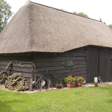 Houten VEESCHUUR (4) vermoedelijk uit de vroege twintigste eeuw met rechthoekige plattegrond, bestaande uit één bouwlaag afgesloten door een schilddak gedekt met riet. De gevels zijn voorzien van houten gepotdekselde wanden. De oostgevel bezit een dubbele deeldeur en een klein staldeurtje. De zuidgevel is voorzien van een staldeurtje. In de westgevel bevinden zich vijf ruiten. De schuur is in oorsprong mogelijk als schaapskooi gebouwd.