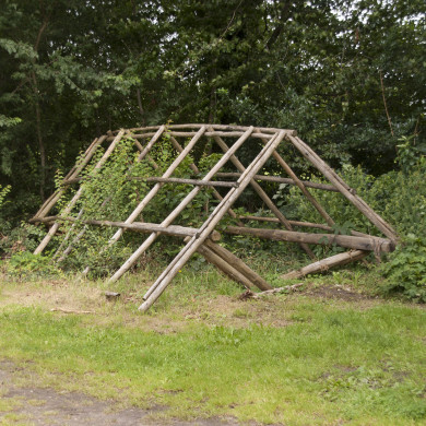 TWEE HOOIBERGEN (7) uit de eerste decennia van de twintigste eeuw. Op het erf bevindt zich aan de zijde van de achtergevel van de boerderij, ter hoogte van de schaapskooi, een drieroedige hooiberg voorzien van een schilddak belegd met golfplaten. Ten oosten hiervan, aan de andere zijde van de toegangsweg, bevindt zich een tweeroedige hooiberg, eveneens voorzien van een schilddak met een bedekking van golfplaten.