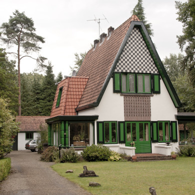 Kleine VILLA met SCHUURTJE, genaamd de "BOSCHHOEK", gebouwd onder invloed van de Amsterdamse School naar ontwerp van architect J. van Biesen in de jaren tussen 1915 en 1920 als zomerhuis voor de familie Oudemans te Den Haag.