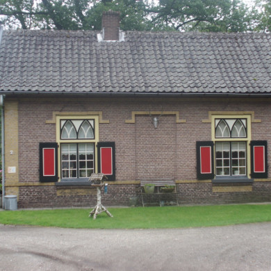De van oorsprong dubbele DIENSTWONING van het type daglonerswoning, bij het landgoed Den Treek is omstreeks 1875 gebouwd. Het huis, genaamd de Zandstulp, is intern verbouwd tot één woonhuis en gemoderniseerd. De deur in de linkerzijgevel is een venster geworden en een venster in de rechterzijgevel is gewijzigd. Het huis is gelegen aan de Heetvelderweg, een van de toegangslanen in de richting van het hoofdgebouw van het landgoed Den Treek.