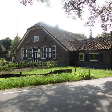INTERIEUR. De boerderij heeft grotendeels de oorspronkelijke indeling behouden met aan de voorzijde in het midden de mooie kamer met een grote schouw over de volle breedte voorzien van mangaankleurige tegeltableaus met bloemen en landschappelijke taferelen met spreuken, verticale banden met blad- en bloemmotieven en met exotische vogels. De woonkamer heeft een balken plafond. Rechts in het woonhuis is een opkamer met plavuizen vloer, waaronder een kelder met troggewelf. Het zomerhuis beschikt over een balkenplafond en een sparrenkap. Het achterhuis heeft een middendeel met aan weerszijden een stal met mestgoot. De sparrenkap en spanten met ankerbalkgebinten zijn oorspronkelijk.
