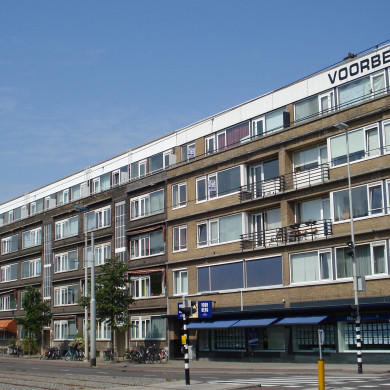 WOONBLOK met PORTIEK-ETAGEWONINGEN en WINKELS, als noordwestelijk deel van het stedebouwkundig ensemble het "Centraal Plan", gebouwd in 1931-1934 naar ontwerp van de architecten J.H. van den Broek, A. Otten en W.Th. ten Bosch en wegens concentratie van voorzieningen in het ensemble, van algemeen belang vanwege de stedebouwkundige, architectuurhistorische en woningtypologische waarde.