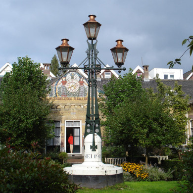 Hofje in totaal 18 woningen omvattend in Overgangsarchitectuur met bijbehorende regentenkamer, tuin, lantaarns en tuinhek/muur van algemeen belang vanwege de typologische, architectuur- en cultuurhistorische waarde, alsook van belang binnen het oeuvre van de architect B. Hooijkaas jr.