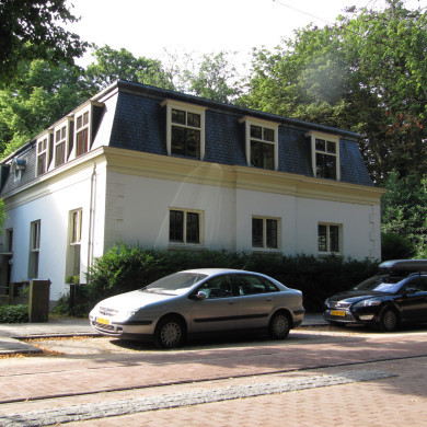 In parkaanleg gelegen gepleisterd landhuis met souterrain, bel-etage en verdieping, derde kwart 19e eeuw, verbouwd ca.1910. De voorgevel heeft risalerende hoekpartijen met gecanneleerde Jonische pilasters op de hoeken; aan de achterzijde een driezijdige uitspringende middenpartij.