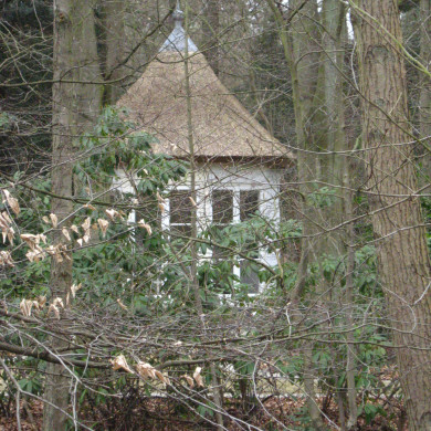 Bij het landhuis 'De Pauwhof' behorend Empire PRIEEL uit 1912. Het prieel ligt ten westen van de dienstwoning, Rijksstraatweg 442, aan de zuidrand van het bos en wordt middels een sloot van de Rijksstraatweg gescheiden. Een gebogen onverhard pad geflankeerd door beukenbomen leidt naar het prieel.