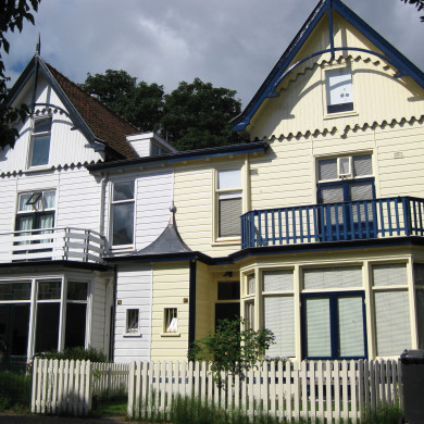 Aan de westzijde van de Sandtmannlaan gelegen DUBBEL WOONHUIS uit 1910 (bouwaanvraag d.d. 1-8-1910), deel uitmakend van het villacomplex Sandtmannlaan.