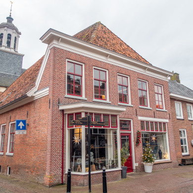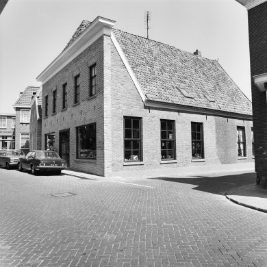 In oorsprong laat 16de-eeuws pand met ankerbalkgebinten en tussenbalkjukken, gelegen op de hoek Grotestraat - Ganzenmarkt. Het pand heet in de volksmond 'Hofmeiershuis', naar de laatste hofmeier Antonij Willem Hendrik Vosding van Beverforde die het huis bewoond heeft. Hij schonk een groot deel van het bij het huis gelegen hof aan de Hervormde Kerk ten behoeve van de bouw van een nieuwe kerk in 1809-1811. In 1861 werd tijdens een ingrijpende verbouwing de achtergevel aan de Grotestraat getransformeerd tot voorgevel. De toen aangebrachte vensters op de beganegrond werden in 1936 vervangen door grotere etalages.