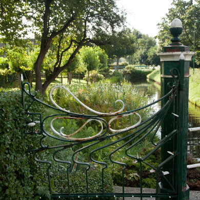 Het op de vaste brug over de sloot, voor het erf van de boerderij geplaatste toegangshek is omstreeks 1906 vervaardigd door de plaatselijke smid Vonk. Het hek bestaat uit twee, traditioneel vormgegeven achtzijdige gietijzeren zware gecanneleerde pijlers met een basement, middenstuk met cannellures, en een kapiteel bekroond door een pijnappelmotief. De openslaande hekdelen alsmede de zijvleugels zijn uitgevoerd in smeedijzer in een op de Art Nouveau stijl geïnspireerde vormgeving met o.a. zweepslagmotieven.