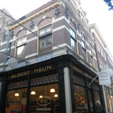 WINKELWOONHUIS met bijbehorend PAKHUIS van Albert Heijn in neorenaissancestijl uit 1897. De eerste winkel van Albert Heijn werd in 1887 in de Zaanstreek geopend, die in Alkmaar behoort tot één van de oudste winkelpanden die het bedrijf nadien in gebruik heeft genomen. Het woonwinkelpand ligt zeer beeldbepalend op de hoek van de Fnidsen en de Hekelstraat in het oude centrum van Alkmaar.
