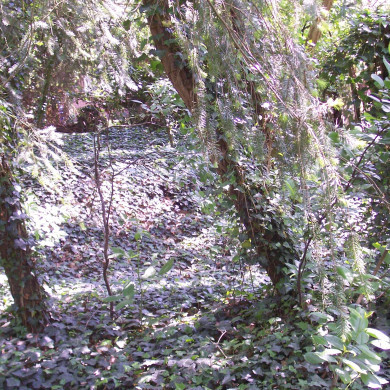 Terrein waarin resten van een grafheuvel uit het Laat Neolithicum of Bronstijd.