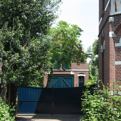 Aan de achterzijde van de villa een vrijstaand voormalig KOETSHUIS. Het koetshuis bezit een rechthoekige plattegrond telt een bouwlaag en wordtafgedekt met en zadeldak met mulden pannen.