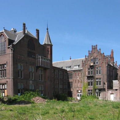 Hoofdgebouw, voormalig LABORATORIUM, onderdeel van het complex voormalig laboratorium van de Afdeling Physica en Electrotechniek van de Polytechnische School (nu TU). Het gebouw is naar het ontwerp in Neo-Gotiek van J. van Lokhorst uit 1899 in 1902-1903 gebouwd.