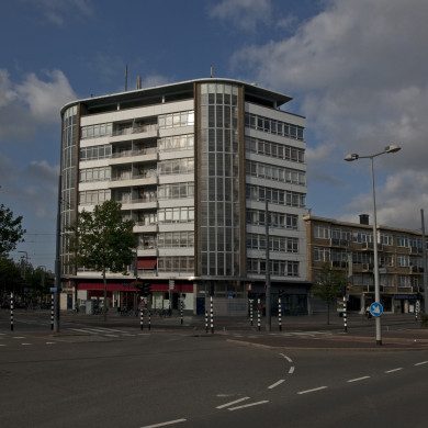 WOONBLOK met ETAGEWONINGEN en WINKELS, gebouwd in 1933-1934, naar ontwerp van de uit Oostenrijk afkomstige architect H. Leppla in een Nieuw Zakelijke bouwstijl in opdracht van C. Korsten en W. Blokland. Het woonblok vormt een ensemble met het aanpandige, op de hoek van de Koemarkt gesitueerde, flatgebouw "Singelwijck". Het complex is markant gesitueerd aan de oostzijde van de Koemarkt en vormt de overgang tussen de oostelijke gevelwand van het Broersvest en de noordelijke gevelwand van de Rotterdamsedijk.