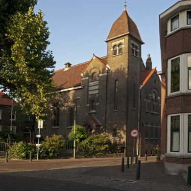 ZAALKERK behorende bij het kerkelijk complex van de Nederlandse Protestantenbond uit 1909 naar ontwerp van H. Evers.