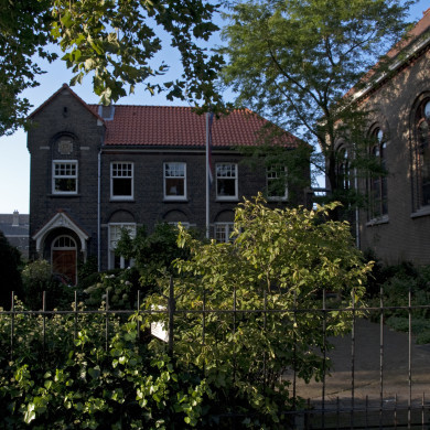 Kerkelijk bijgebouw met KOSTERSWONING en CATECHISATIELOKAAL behorende bij het kerkelijk complex van de Nederlandse protestantenbond naar ontwerp van H. Evers uit 1909.