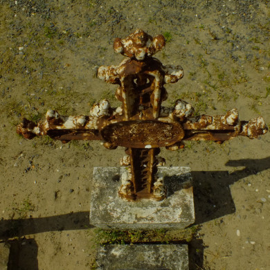 Gietijzeren grafkruis op hardstenen sokkel. Locatie A 3 2.
