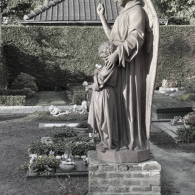 Het BEELD van een Engelbewaarder dateert uit ca. 1890 en staat op het in 1837 aangelegde kerkhof, op het gedeelte waar zich de kindergraven bevinden. Het beeld is geplaatst op een naoorlogse bakstenen sokkel. De aanduiding wie er wanneer werd begraven is verdwenen. Een identiek beeld, maar in slechtere staat, bevindt zich op de begraafplaats aan de Molenstraat 72 te Helmond.