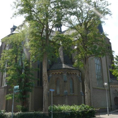 De R.K. Neo-gotische H. Maria Boodschap KERK op no. 107 werd in 1911 gebouwd naar ontwerp van architect Jacques van Groenendael. De kerk leed in 1944 ernstige oorlogsschade: de toren werd goeddeels verwoest en gewelven stortten in. In 1958 was de restauratie voltooid. De restauratie geschiedde grotendeels in de oude trant, maar met wijzigingen bij de toren.