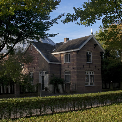 De voormalige DIENSTWONING voor een gevangenisbewaarder is samen met de vijf naastgelegen identieke dienstwoningen ontworpen in 1883 door J. F. Metzelaar bij de strafgevangenis.