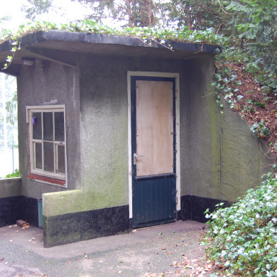 Omschrijving onderdeel 8: WESTELIJK KAARTVERKOOPGEBOUW aan de zuidwestelijke entree van het terrein.