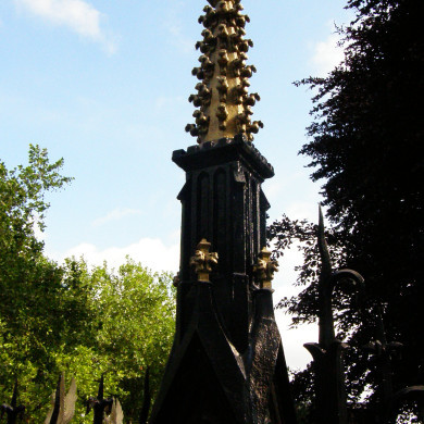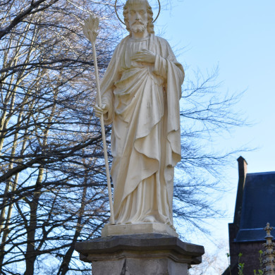 De erfafscheiding aan de straat bestaat uit een smeedijzeren hekwerk met drie draaihekken tussen bakstenen hoekpilasters en gietijzeren Neo-Gotische pilasters met pinakelbekroning. Op de hoekpilasters staan vier gietijzeren beelden. Op de middelste twee pilasters staan, als begeleiding naar de rustplaats, apocalyptische engelen. Op de buitenste staan een beeld van Johannes de Doper en St. Jozef. Het giet- en smeedijzerwerk is vervaardigd door de Tilburgse IJzergieterij van Van der Schoot.