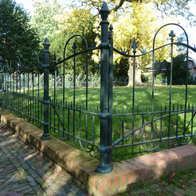 Het kerkhof is aan de noord-, west- en zuidzijde afgezet met een gietijzeren hek op bakstenen onderslag in eenvoudige, laat 19de-eeuwse vormen. Dit hek flankeert ook het pad van/naar de kerktoren maar ontbreekt aan de oostzijde over een lengte van enkele meters; restauratie in 2003-2004.