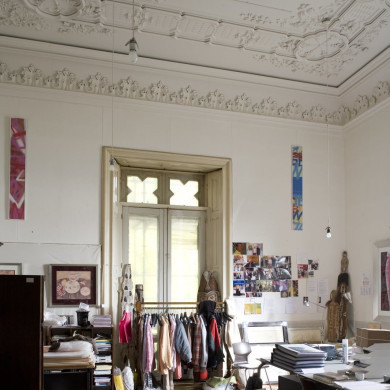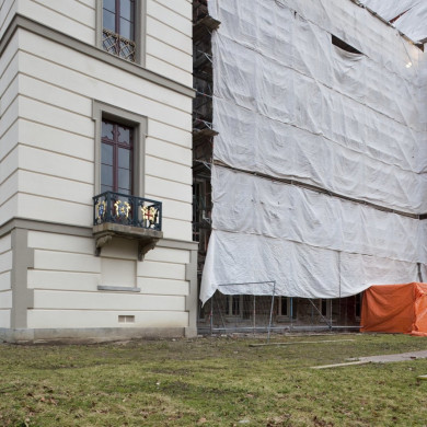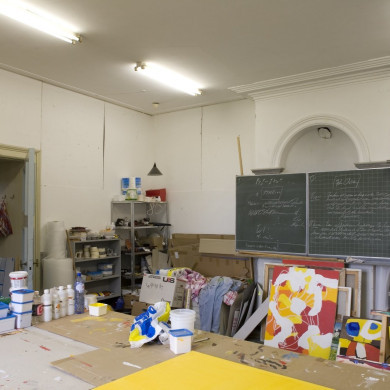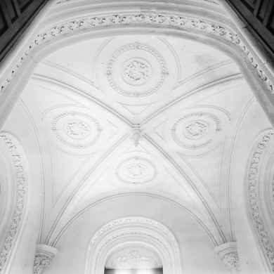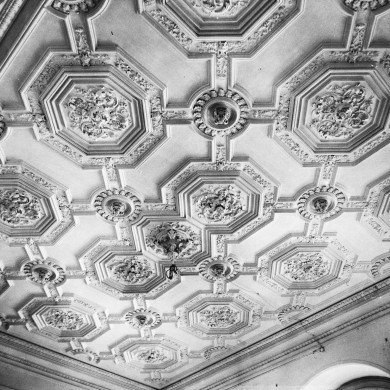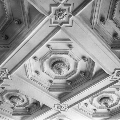 Kleine salon aan de noordwestijde: vierkant stucplafond.
