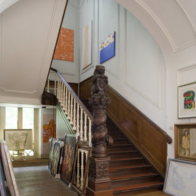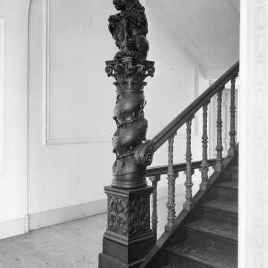 Trap: vanuit de hal voert een laat 19de-eeuwse trap naar de eerste verdieping; de forse houten trappaal is bekroond met een schilddragende leeuw die het wapenschild van Van Zuylen draagt; gedraaide gietijzeren balusters in neorenaissance stijl ondersteunen de houten leuningen; het plafond in het trappenhuis is een stucplafond in neorenaissance stijl.