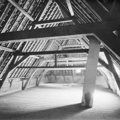 In de torens wenteltrappen uit de tweede helft van de 19de eeuw, die leiden naar de zolders en kamers in de dwarskappen achter de kantelen; de rechthoekige noordtoren is door schijnmuren verbouwd tot een achthoek.