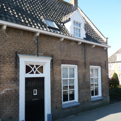 Huis onder schilddak, in gele baksteen. Eind 18e of begin 19e eeuw.