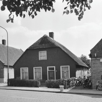 BOERDERIJ van het in de Langstraat gebruikelijke type, midden 19e eeuw. Met riet gedekt wolfdak, voorgevel met vlechtingen, vensters met zes-, negen-, twaalf- en twintigruitsschuiframen.