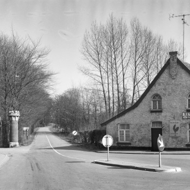 TOEGANGSHEK, XIX Het meest westelijke toegangshek staat aan het begin (dorpszijde) van de officiële oprijlaan naar het landhuis, het wordt momenteel niet meer gebruikt. De ronde bakstenen pijlers met hardstenen kanteelbekroningen zijn met elkaar verbonden door de oorspronkelijke smeedijzeren hekvleugels. Ze vertonen in stijl verwantschap met het werk van P.J. H. Cuypers. Vanwege Cuypers' betrokkenheid bij het ontwerp van het hoofdgebouw is het goed mogelijk dat het hek door hem of in zijn atelier ontworpen is.