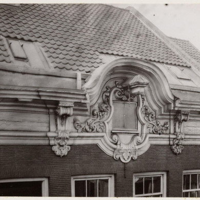 Pand met gevel (XVIII) onder latere rollagentop deur en snijraam XIX A.