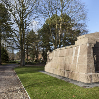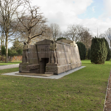Het GRAFMONUMENT van J.B. van Heutsz (1851-1924), van 1904-1909 gouverneur-generaal van Nederlands-Indië bestaande uit een grafkelder en een natuurstenen bovenbouw met geïntegreerde sculpturen. Het geheel is uitgevoerd naar het bekroonde ontwerp 'Atjeh' van de Haagse beeldhouwer B.M.A. Ingen Housz (1881-1947) en de architect D. Roosenburg (1887-1962). De onderbouw bevat granieten blokken in rustiekwerk en een verdiept geplaatste ijzeren toegangsdeur, toegankelijk via hardstenen traptreden. De in gebouchardeerd graniet uitgevoerde bovenbouw bevat een rusticasokkel en taps toelopende blokken; bij de ingang twee gestileerde sculpturen van krijgers als dodenwachters en op de kopse wand onder het fronton de naam Van Heutsz in eigentijdse metalen letters; aan de achterzijde twee hoofdreliëfs te weerszijden van een gedenksteen met inscriptie onder fronton.