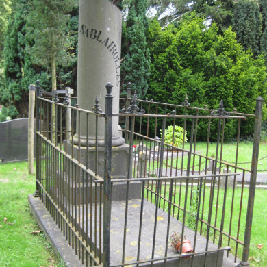 In oorsprong in 1867 opgericht GRAFMONUMENT (klasse 2, vak 6, nr.16) van mevrouw S.N. Sablairolles (1829-1867), destijds een vermaard zangeres, in 1901 overgebracht van de Oude Oosterbegraafplaats. Het monument heeft de vorm van een afgebroken zuil op een hardstenen zerk, geplaatst binnen een smeedijzeren hekwerk. De zuil en het reliëf van een geknakte roos op het basement symboliseren het plotseling afgebroken leven en zijn bekende doodssymbolen. Het grafteken werd gemaakt door J.D.J. Teixeira de Mattos & Zoon te Amsterdam.