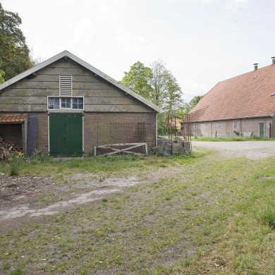 Vanuit een rechthoekige plattegrond opgetrokken bijschuur onder een met verbeterde Hollandse pannen gedekt zadeldak. Het linker deel van de schuur is gesloten en voornamelijk opgetrokken in baksteen. Dit deel van de schuur was oorspronkelijk bestemd voor de stalling van paarden en enkele koeien en diende tevens als bergruimte. De vensters in de linker (west)gevel hebben uitkragende, betonnen zesruits ramen met ventilatiedorpels, die staan tussen lisenen. De symmetrische, noordelijke kopgevel bevat een dubbele deur onder een bovenlicht met roedenverdeling en heeft een gepotdekselde geveltop van heraklietplanken. Het open deel van de schuur aan de westzijde heeft blinde houten wanden en een kap die aan de open zijde rust op palen die op poeren staan. De naar de weg gekeerde kopgevel van liggende houten planken is voorzien van een luik. Het houten deel van de rechter gevel is eveneens blind, maar is samengesteld uit staande planken. In het gemetselde deel van deze schuurzijde staan vier rechtgesloten vensters met achtruits ramen. Het inwendige van de schuur is voor de bescherming van ondergeschikt belang.
