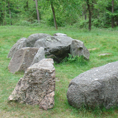In oorsprong 18e eeuwse keuterboerderij met achterbaander, onder rietgedekt aan voorzijde afgewolfd schilddak; 28-ruitsschuifvensters en 15-ruits-en 4-ruitsvensters; onder- en bovendeur; staafankers. Achterbaander met onderschoer. Op het erf houten schuur onder rieten schilddak.