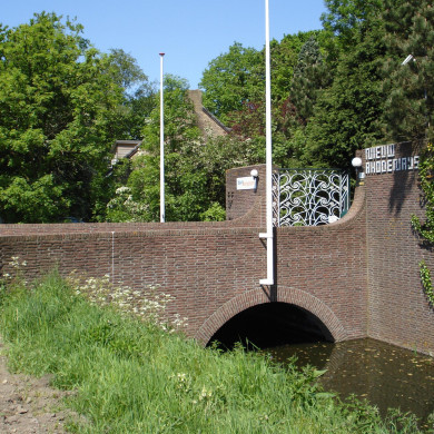 LANDHUIS, 'Nieuw Rhodenrijs' in 1933 gebouwd in opdracht van de Rotterdamse reder Van Hoboken, naar een traditionalistisch ontwerp van architect P.C. Pouderoyen. Rondom het huis loopt een ommuurde border aan de voorzijde overgaand in het eveneens ommuurde terras.