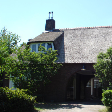 LANDHUIS, 'Nieuw Rhodenrijs' in 1933 gebouwd in opdracht van de Rotterdamse reder Van Hoboken, naar een traditionalistisch ontwerp van architect P.C. Pouderoyen. Rondom het huis loopt een ommuurde border aan de voorzijde overgaand in het eveneens ommuurde terras.
