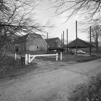 HOOIBERG daterend uit vermoedelijk eind 19de eeuw, gesitueerd op een grasstrook aan het op het landgoed zuidwestelijk georiënteerde pad. Van de hier voorkomende twee hooibergen, is die tegenover de achtergevel van de boerderij voorzien van drie betonnen roeden en een vijfzijdige rieten kap.
