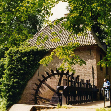 MOLEN, XVIII of ouder; waterradmolen met aanhorigheden, gerestaureerd in de jaren 80; naast het voorplein op de noordoever van de beek; vrijwel vierkant bakstenen gebouw met zolderverdieping onder schilddak met grijze pannen; geen dakgoot; geprofileerde bakstenen rand als muurbeëindiging direct onder dakvoet; ingang met geblokte omlijsting in oostgevel; daarboven een hijsluik; in noordgevel twee ronde zolderlichten.