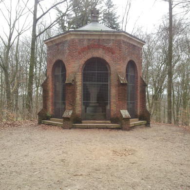 VELDKAPEL ('Christuskoepel'). De kapel is gebouwd in 1939 door A. J. Kropholler in traditionalistische stijl en tot stand gekomen na een oproep van koningin Wilhelmina tot geestelijke en morele herbewapening. De kapel is geplaatst op een kunstmatige heuvel waarop zich voorheen een belvedère bevond.