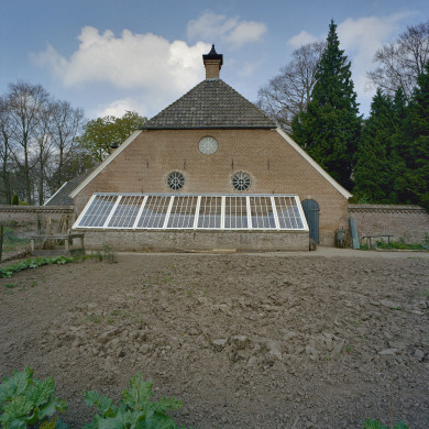 DRUIVENKAS uit het einde van de 18de eeuw. Tegen de achterzijde van de in de negentiende eeuw gebouwde uitbreiding van het koetshuis door middel van een stenen schuur bevindt zich een eenvoudige vermoedelijk laat 18de-eeuwse DRUIVENKAS met in kruisverband gemetselde gevels en een glazen lessenaarsdak, bestaande uit verschuifbare panelen. In de zijgevel bevindt zich een toegangsdeur. In de achtergevel van de kas, die sinds de bouw van de schuur deel uitmaakt van de gevel van de schuur, een bouwspoor van een oude toegangsdeur, van waaruit de gevolgtrekking gemaakt kan worden dat de kas reeds bestond toen de schuur werd gebouwd.