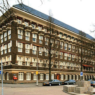 In Nieuw-Zakelijke stijl uitgevoerd schoolcomplex, bestaande uit een inpandig gesitueerd hoofdgebouw, een langgerekt poortgebouw en de v.m. schoolhoofd-conciergewoningen te rechterzijde, beide teruggerooid t.o.v. de bebouwing aan de Cliostraat, gebouwd 1929-'30 naar ontwerp van J.Duiker.