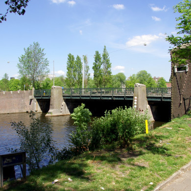 Vaste BRUG over het Amstelkanaal (nr. 400, de 'P.L. Kramerbrug') met langs het Amstelkanaal twee huisjes voor het GEB en de afdeling 'Beplantingen' van de Dienst Publieke Werken, gebouwd naar een ontwerp van P.L. Kramer uit 1917. In 1921 werd de bouw voltooid. De verkeersbrug ligt op de radiaalroute die vanuit het zuiden langs de Amstel naar het centrum van de stad voert. Daarnaast is de brug een belangrijke verbinding tussen Berlages Plan Zuid en de oude stad. De constructie van deze vaste brug werd -zoals gewoonlijk bij Kramers bruggen- ontworpen door de Afdeling Bruggen van de Dienst Publieke Werken. Het beeldhouwwerk, uitgevoerd door Hildo Krop, refereert aan de zee, waaraan de stad haar welvaart te danken had en aan de historie van de stad. Uitgebeeld zijn zeedieren als zeerobben en -honden en paalwormen. De geschiedenis van de stad wordt verbeeld door de figuur van Gijsbrecht van Amstel en het Koggeschip. Het smeedwerk van de balustrade lijkt geïnspireerd op de golven van het water en de tuigage van schepen. De architectonische vormgeving van de brug is in de stijl van de Amsterdamse School.