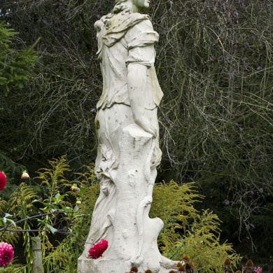 - het hardstenen beeld van een mannelijke god (Apollo?) waarvan de kop is verdwenen en het linkerbeen is gebroken. Torso met draperie rond de heupen en een smalle band dwars over het lichaam, waaraan een pijlenkoker. Lijkt een pendant te zijn van Diana. De achterkant van het overigens en ronde bosse gebeeldhouwde beeld is vlak, zodat er verondersteld mag worden dat het beeld oorspronkelijk tegen een muur stond.